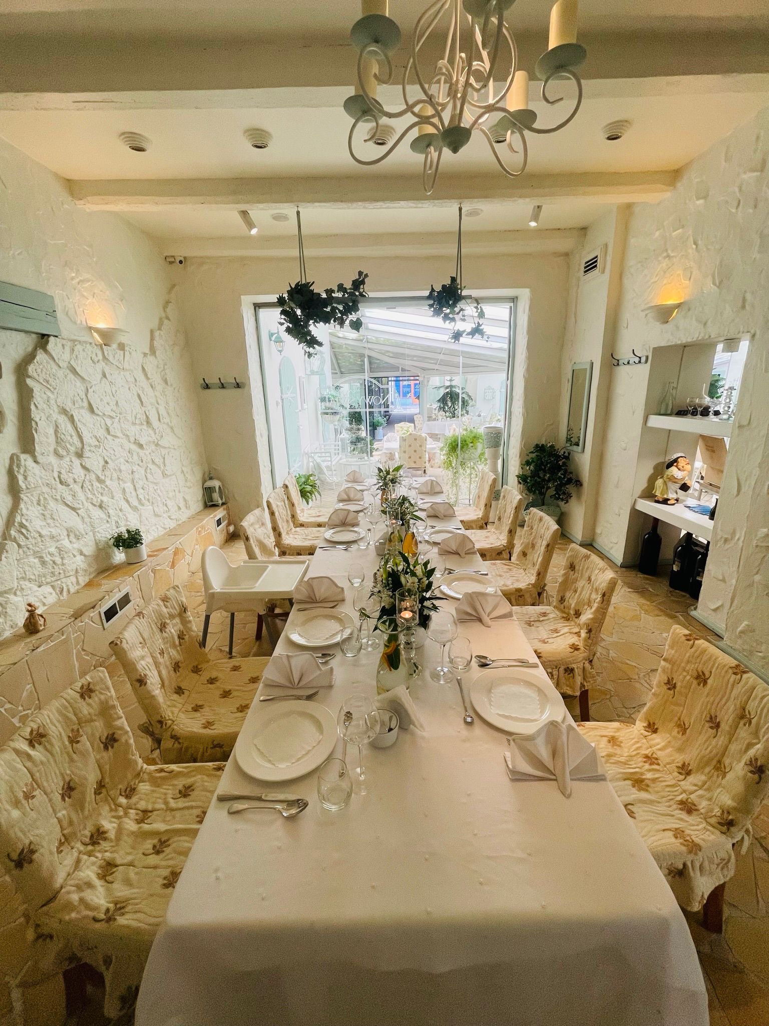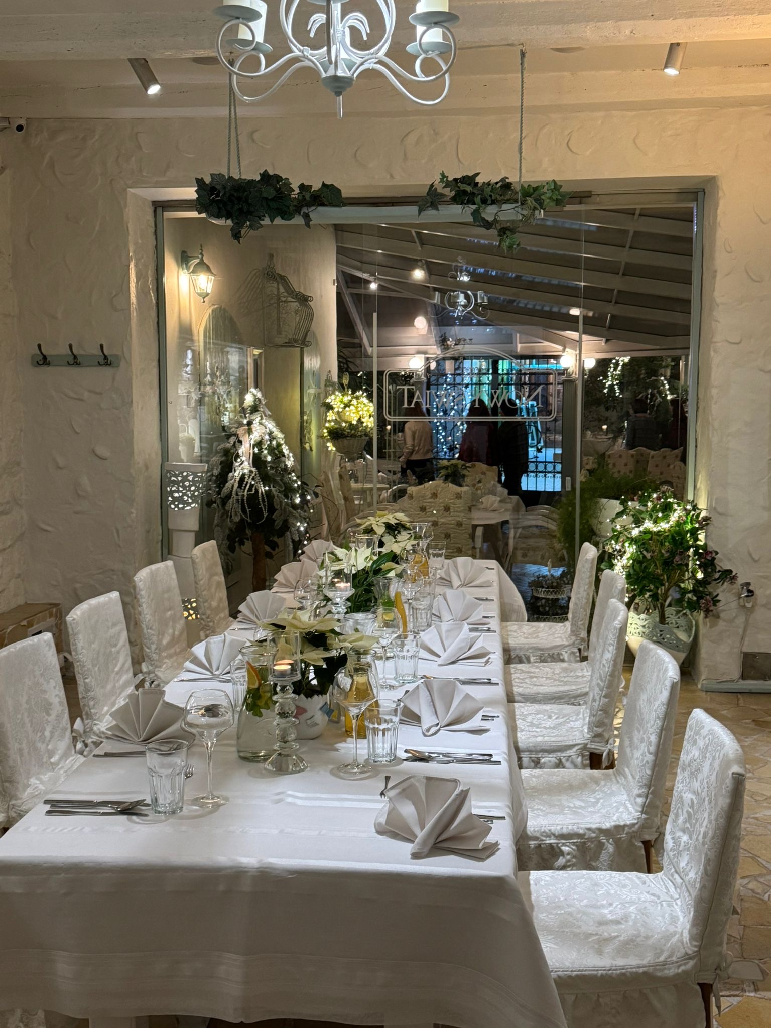 Wyeksponowany mur dodaje sali niepowtarzalnego uroku i podkreśla jej oryginalny klimat. To przestrzeń, w której historia łączy się z nowoczesnością, tworząc idealne tło zarówno dla codziennych spotkań, jak i uroczystości w kameralnym gronie.